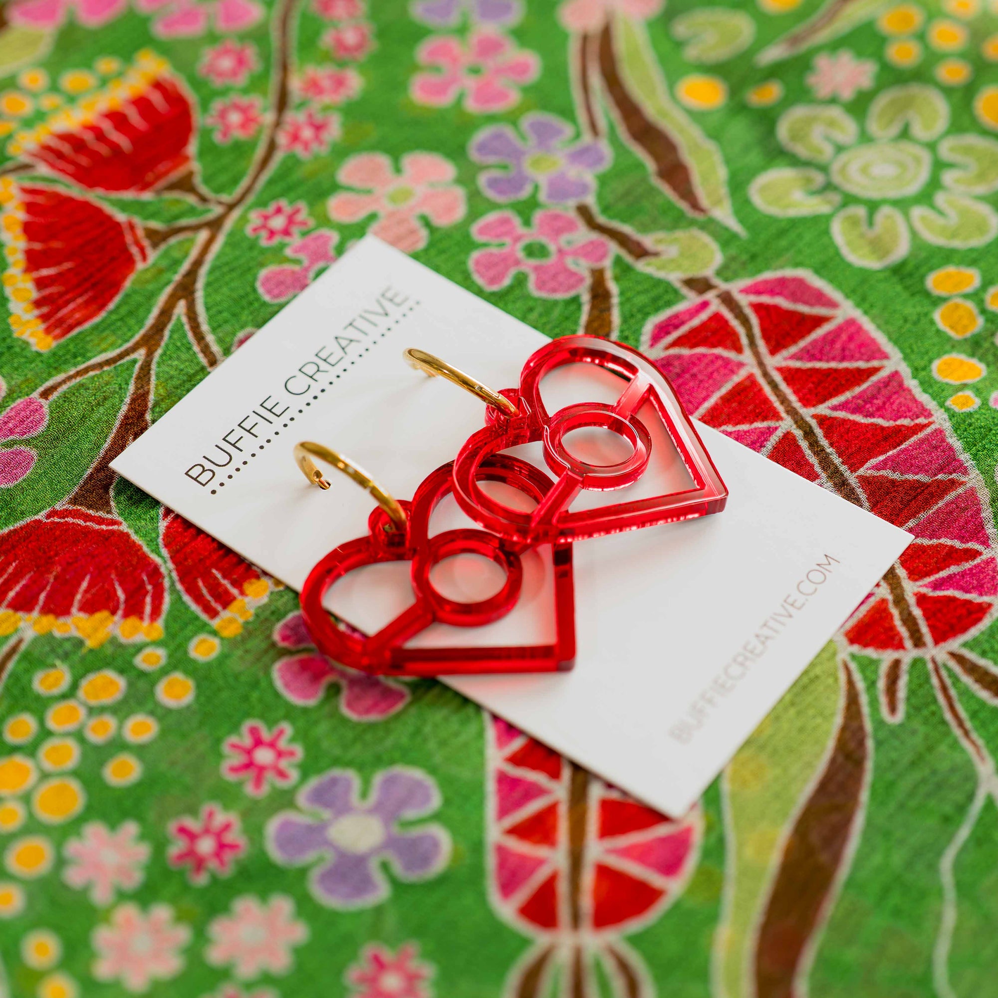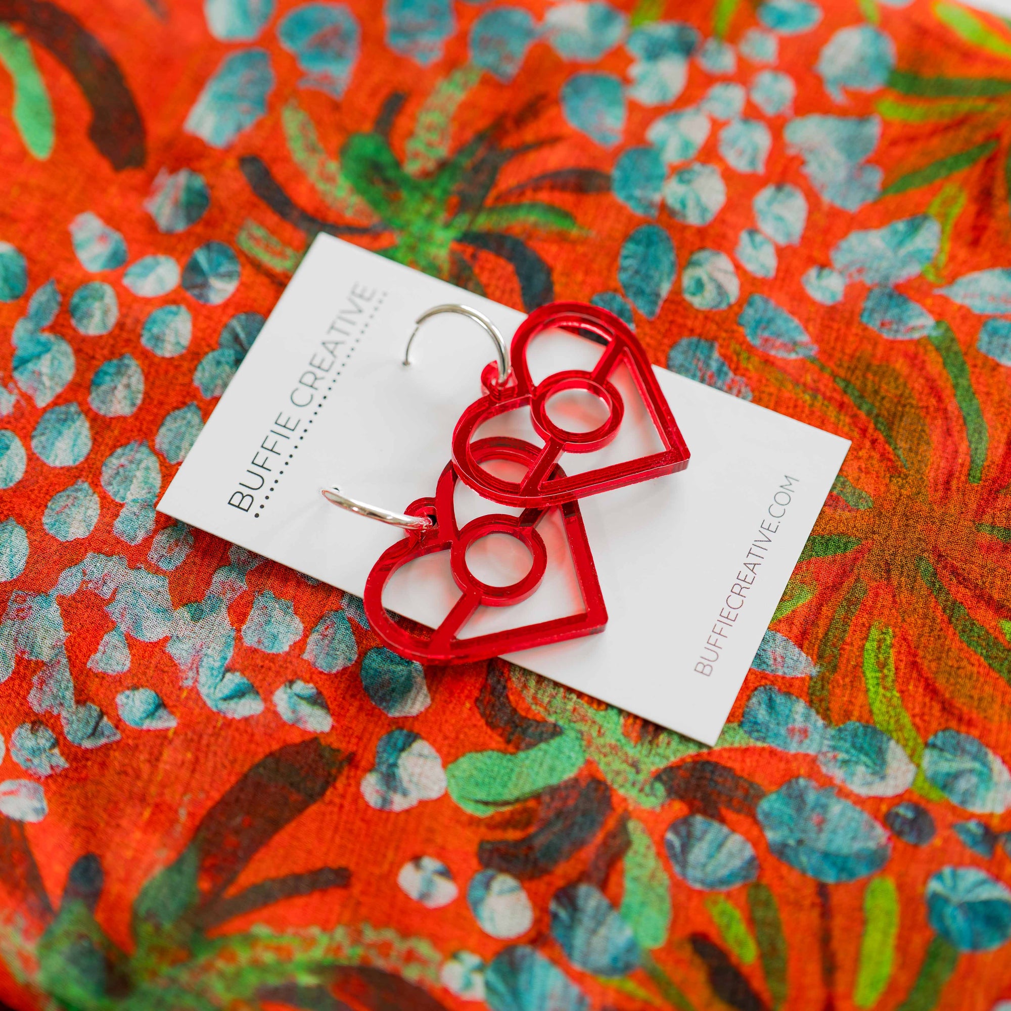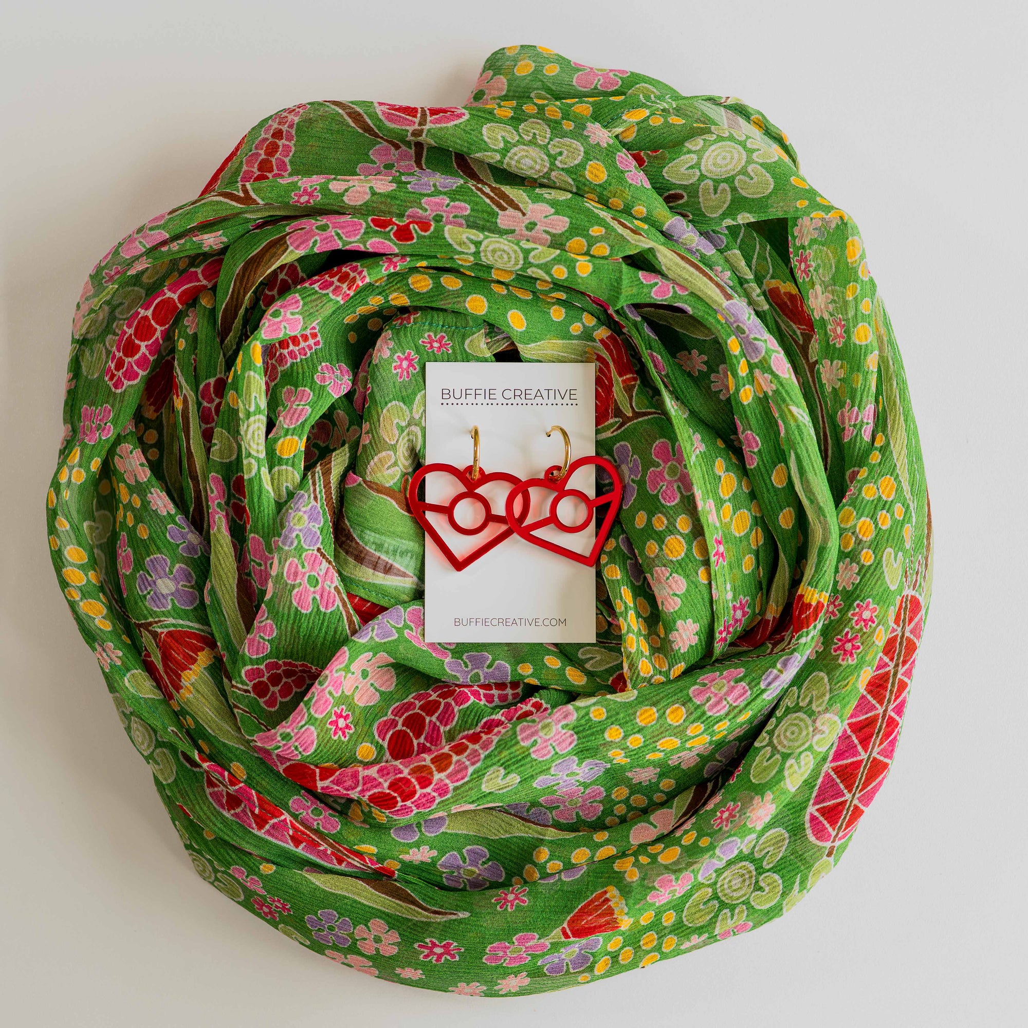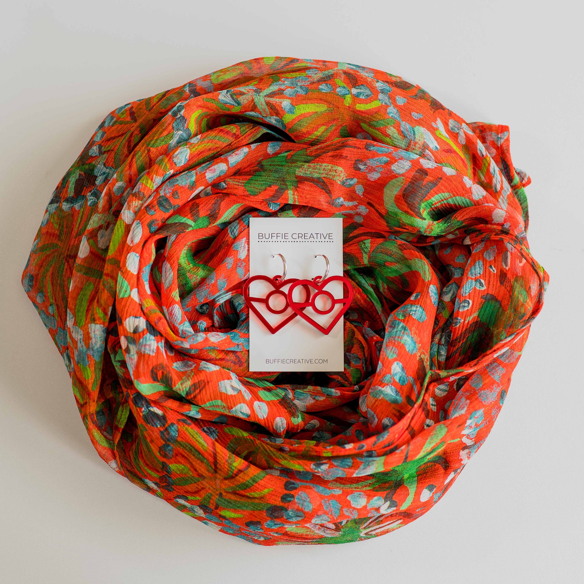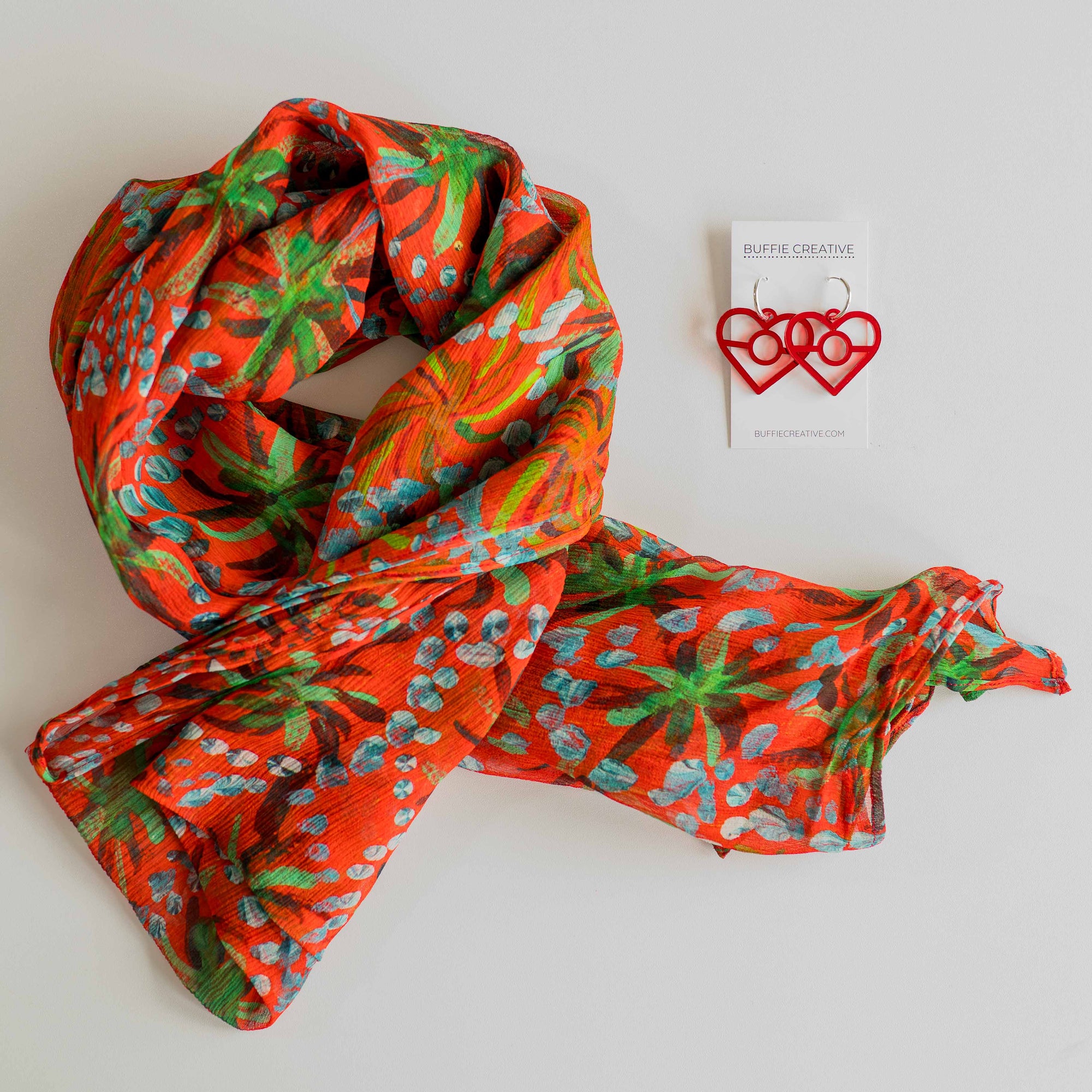 Boodja Silk Chiffon Scarf + Aboriginal Red Flag Earrings